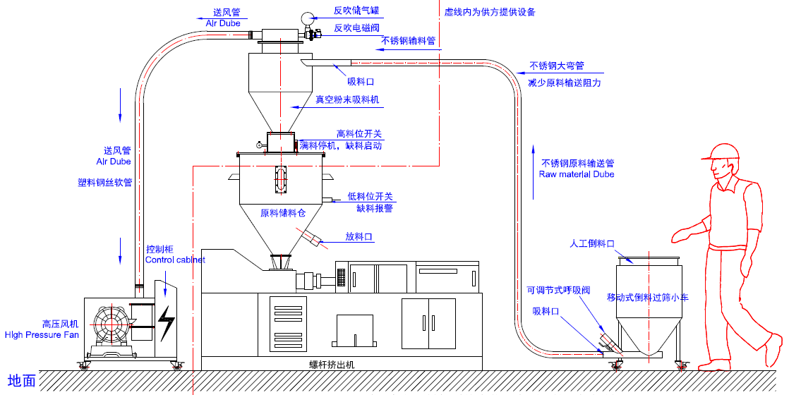 氣動真空上料機又叫氣動真空輸送機、主要針對工廠原料的輸送時,粉塵大、用人成本高、工人搬運累、環保不達標等一系列問題。